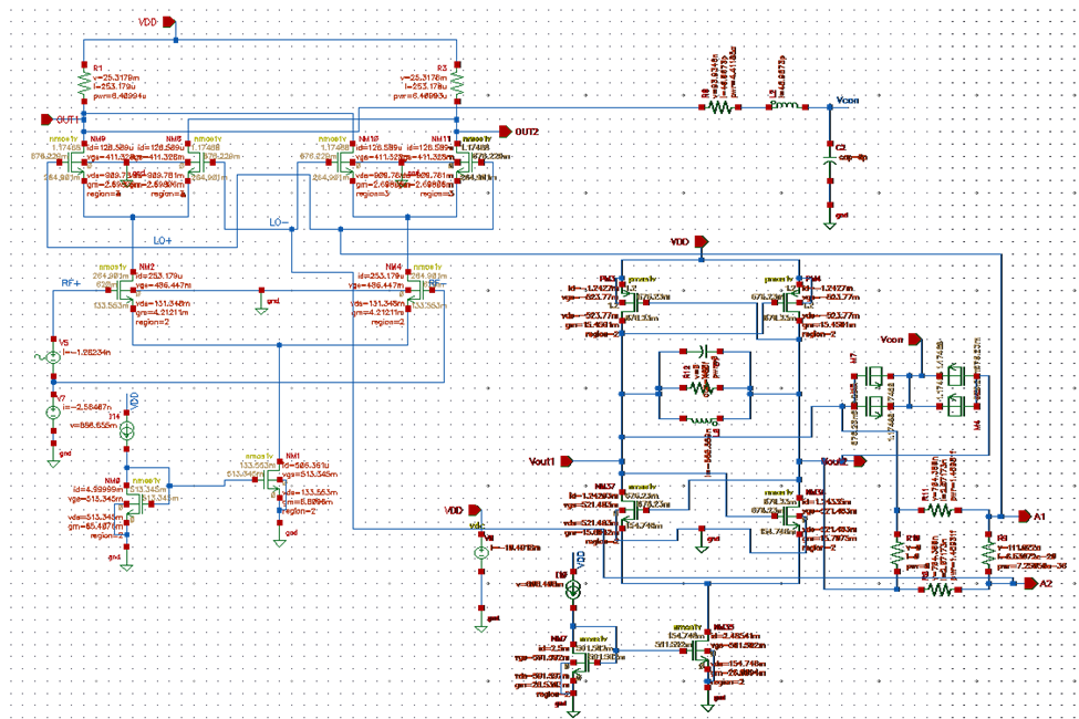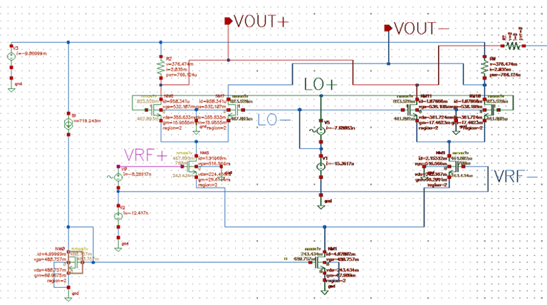 Schematic Design of Gilbert Cell as Phase Detector